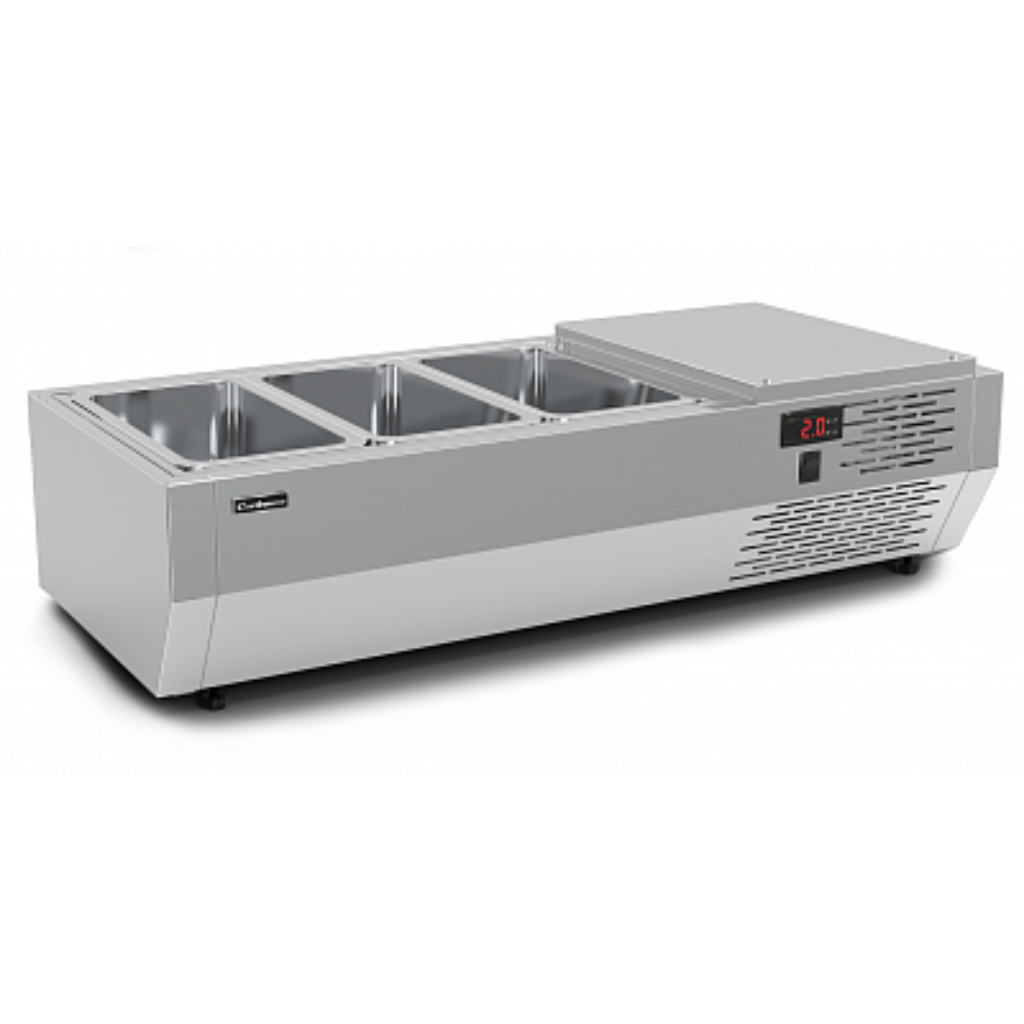 Витрина для ингредиента Carboma A40 SM 0,9 (VTi2-G (GN1/3)) предназначена для охлаждения, кратковременного хранения и презентации ингредиентов и готовых блюд, таких как салаты и пицца. Устройство может использоваться как дополнительный модуль к холодильным столам, пицца-станциям, барным стойкам и прилавкам. Идеально подходит для предприятий общественного питания и торговли: кафе, ресторанов, баров, магазинов и супермаркетов.