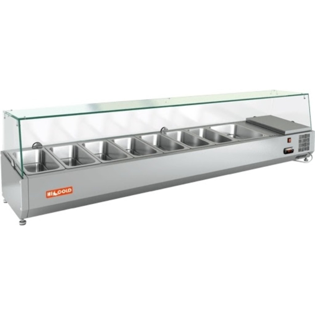 Каталог оборудования Холодильное оборудованиеВитрины для ингредиентовВитрина холодильная для ингредиентов HICOLD VRTG 1915 к PZ4 (1/3) Витрина холодильная для ингредиентов HICOLD VRTG 1915 к PZ4 (1/3) Код товара: 064-656 Поделиться: WhatsAppTelegram СравнитьДобавить в КПВ избранное 0 72 082 ₽ В корзину 0 шт Под заказСамовывоз сегодня бесплатно Взять в кредит Купить в лизинг Получить консультацию в WhatsApp Описание Характеристики Отзывы 0 Инструкции 3 Витрина холодильная для ингредиентов HICOLD VRTG 1915 к PZ4 (1/3) предназначена для охлаждения, кратковременного хранения и демонстрации ингредиентов, салатов и готовых блюд на предприятиях общественного питания и торговли. Устанавливается на холодильные столы для пиццы серии PZ4 благодаря встроенным креплениям в нижней части корпуса. На фото показана аналогичная модель с настольной установкой. Ключевые особенности: Корпус из нержавеющей стали — долговечность, простота ухода. Электронная панель управления — точная регулировка температуры. Исполнение G — стеклянная надстройка для удобного обзора продуктов. Высота витрины — 459 мм — компактное размещение на рабочей поверхности. Вместимость: 7xGN1/3 + 1xGN1/2 — рациональная организация хранения (гастроёмкости приобретаются отдельно). Совместимые модели столов: PZ4-11/GN HICOLD VRTG 1915 к PZ4 (1/3)— это профессиональная настольная витрина, которая сочетает компактные размеры, современное управление и высокое качество охлаждения. Отличный выбор для пиццерий, ресторанов и кафе, где важны удобство доступа, скорость работы и эффектная подача продуктов.Изображение товара, представленного на фото, может отличаться от его фактического вида. Показать все Габаритные размеры1915×385×459 ммДиапазон рабочей температурыот +2 до +7 °CДлина1915 ммГлубина385 ммВысота459 ммТип крышкиСтеклянная Гастроемкостей8 штТип гастроемкостейGN1/3, GN1/2 Мощность150 ВтНапряжение220 ВТип охлажденияСтатическое Материал изготовленияНержавеющая сталь ХладагентR134 Мощность0,15 кВтВес нетто56 кгВес брутто100 кгТип оттайкиРучная Габариты в упаковке2015×485×559 ммБрендHicold Оставить отзыв Еще никто не оставил отзыв на этот товар Инструкция на HICOLD VRTG 1915 к PZ4.pdfСхема установки на стол.jpgДекларация о соответствии.pdf Похожие товары Перейти в каталог Под заказ 53 040 ₽ Витрина холодильная для ингредиентов TEFCOLD VK33-180 С этим товаром покупают В наличии 102 017 ₽ Стол морозильный низкотемпературный Polair TB2GN-GC В наличии 26 519 ₽ Льдогенератор Cooleq ZB-15B (пальчики) В наличии 71 392 ₽ Шкаф холодильный Polair СМ 105-S