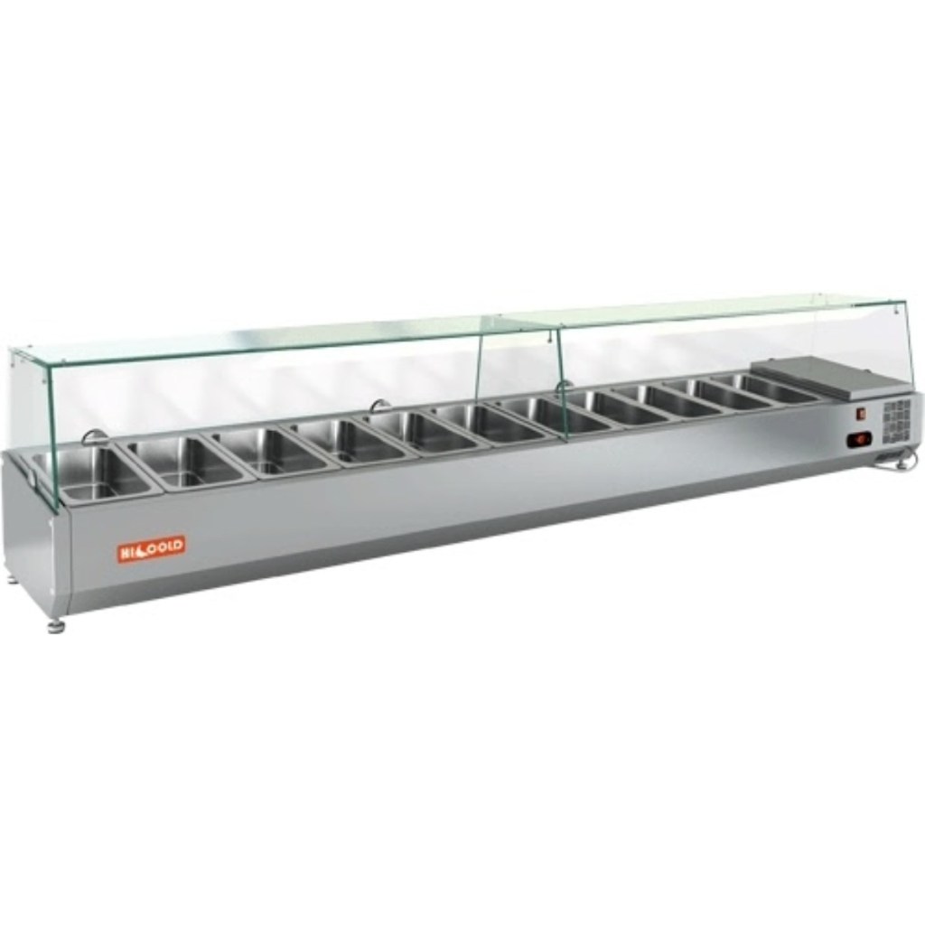 Каталог оборудования Холодильное оборудованиеВитрины для ингредиентовВитрина холодильная для ингредиентов HICOLD VRTG 2280 к PZ3 (1/3) Витрина холодильная для ингредиентов HICOLD VRTG 2280 к PZ3 (1/3) Код товара: 064-658 Поделиться: WhatsAppTelegram СравнитьДобавить в КПВ избранное 0 84 610 ₽ В корзину 0 шт Под заказСамовывоз сегодня бесплатно Взять в кредит Купить в лизинг Получить консультацию в WhatsApp Описание Характеристики Отзывы 0 Инструкции 3 Витрина холодильная для ингредиентов HICOLD VRTG 2280 к PZ3 (1/3) предназначена для охлаждения, кратковременного хранения и демонстрации ингредиентов, салатов и готовых блюд на предприятиях общественного питания и торговли. Устанавливается на холодильные столы для пиццы серии PZ3 благодаря встроенным креплениям в нижней части корпуса. На фото показана аналогичная модель с настольной установкой. Ключевые особенности: Корпус из нержавеющей стали — долговечность, простота ухода. Электронная панель управления — точная регулировка температуры. Исполнение G — стеклянная надстройка для удобного обзора продуктов. Высота витрины — 459 мм — компактное размещение на рабочей поверхности. Вместимость: 11xGN1/3 — рациональная организация хранения (гастроёмкости приобретаются отдельно). Совместимые модели столов: PZ3-1111/SN, PZ3-1111/GN HICOLD VRTG 2280 к PZ3 (1/3) — это профессиональная настольная витрина, которая сочетает компактные размеры, современное управление и высокое качество охлаждения. Отличный выбор для пиццерий, ресторанов и кафе, где важны удобство доступа, скорость работы и эффектная подача продуктов.Изображение товара, представленного на фото, может отличаться от его фактического вида. Показать все Габаритные размеры2280×385×459 ммДиапазон рабочей температурыот +2 до +7 °CДлина2280 ммГлубина385 ммВысота459 ммТип крышкиСтеклянная Гастроемкостей11 штТип гастроемкостейGN1/3 Мощность150 ВтРасход электроэнергии в сутки0,15 кВтНапряжение220 ВТип охлажденияСтатическое Материал изготовленияНержавеющая сталь ХладагентR134 Мощность0,15 кВтВес нетто65 кгВес брутто109 кгТип оттайкиРучная Габариты в упаковке2380×485×559 ммБрендHicold Оставить отзыв Еще никто не оставил отзыв на этот товар Инструкция на HICOLD VRTG 2280 к PZ3.pdfСхема установки на стол.jpgДекларация о соответствии.pdf Похожие товары Перейти в каталог Под заказ 59 500 ₽ Витрина для ингредиентов Polair VT1vEN (1/3) с подсветкой и защитным колпаком Под заказ 44 236 ₽ Витрина для ингредиентов Carboma A40 SM 0,9 (3 GN1/3) Под заказ 61 119 ₽ Витрина холодильная для ингредиентов HICOLD VRTO 2280 1/3 Под заказ 58 528 ₽ Витрина холодильная для ингредиентов HICOLD VRTG 1000 1/3 Под заказ 48 692 ₽ Витрина для ингредиентов Carboma A30 SM 1,2 (5 GN1/4) с крышкой Под заказ 57 043 ₽ Витрина для ингредиентов Carboma A30 SM 1,2-G (5 GN1/4) Под заказ 55 287 ₽ Витрина холодильная для ингредиентов HICOLD VRTU 1835 1/4 В наличии 46 276 ₽ Витрина холодильная для ингредиентов Tatra TVR1200-5GN1/4 С этим товаром покупают Под заказ 108 891 ₽ Стол морозильный HiCold SN 1/BT Под заказ 51 624 ₽ Льдогенератор HURAKAN HKN-IMF20 (пальчики) В наличии 71 392 ₽ Шкаф холодильный Polair СМ 105-S