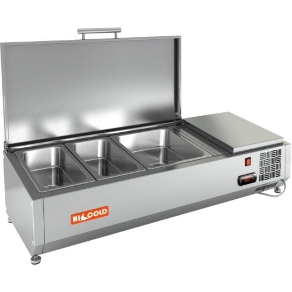 Каталог оборудования Холодильное оборудованиеВитрины для ингредиентовВитрина холодильная для ингредиентов HICOLD VRTU 1000 к PZE3 (1/3) Витрина холодильная для ингредиентов HICOLD VRTU 1000 к PZE3 (1/3) Код товара: 064-664 Поделиться: WhatsAppTelegram СравнитьДобавить в КПВ избранное 0 47 674 ₽ В корзину 0 шт Под заказСамовывоз сегодня бесплатно Взять в кредит Купить в лизинг Получить консультацию в WhatsApp Описание Характеристики Отзывы 0 Инструкции 3 Витрина холодильная для ингредиентов HICOLD VRTU 1000 к PZE3 (1/3) предназначена для охлаждения, кратковременного хранения и демонстрации ингредиентов, салатов и готовых блюд на предприятиях общественного питания и торговли. Устанавливается на холодильные столы для пиццы серии PZE3 благодаря встроенным креплениям в нижней части корпуса. На фото показана аналогичная модель с настольной установкой. Ключевые особенности: Корпус из нержавеющей стали — долговечность и лёгкость ухода. Электронная панель управления — точная настройка температуры. Исполнение U — оснащена крышкой для защиты продуктов. Высота витрины — 279 мм — компактное размещение на рабочей поверхности. Вместимость: 2 x GN1/3 + 1 x GN1/2 — рациональная организация хранения (гастроёмкости приобретаются отдельно). Совместимые модели столов: PZE3-11/GN, PZE3-11/SN HICOLD VRTU 1000 к PZE3 (1/3) — это профессиональная настольная витрина, которая сочетает компактные размеры, современное управление и надежную защиту ингредиентов. Отличный выбор для пиццерий, ресторанов и кафе, где важны удобство доступа, сохранность продуктов и высокая скорость работы.Изображение товара, представленного на фото, может отличаться от его фактического вида. Показать все Габаритные размеры1000×385×279 ммДиапазон рабочей температурыот +2 до +7 °CДлина1000 ммГлубина385 ммВысота279 ммТип крышкиМеталлическая Гастроемкостей3 штТип гастроемкостейGN 1/2, GN 1/3 Напряжение220 ВТип охлажденияСтатическое Материал изготовленияНержавеющая сталь ХладагентR134 Мощность0,15 кВтВес нетто 27 кгВес брутто60 кгТип оттайкиРучная Габариты в упаковке1180×550×590 ммБрендHicold Оставить отзыв Еще никто не оставил отзыв на этот товар Инструкция на HICOLD VRTU 2360 к PZ4.pdfСхема установки на витрину.jpgДекларация о соответствии.pdf Похожие товары Перейти в каталог Под заказ 50 575 ₽ Витрина для ингредиентов Polair VT2-G (1/3) с крышкой В наличии 46 639 ₽ Витрина холодильная для ингредиентов TEFCOLD VK33-120 С этим товаром покупают В наличии 102 148 ₽ Стол морозильный Cooleq SNACK2100BT/600 В наличии 92 443 ₽ Льдогенератор HURAKAN HKN-IMG40 (гурме)