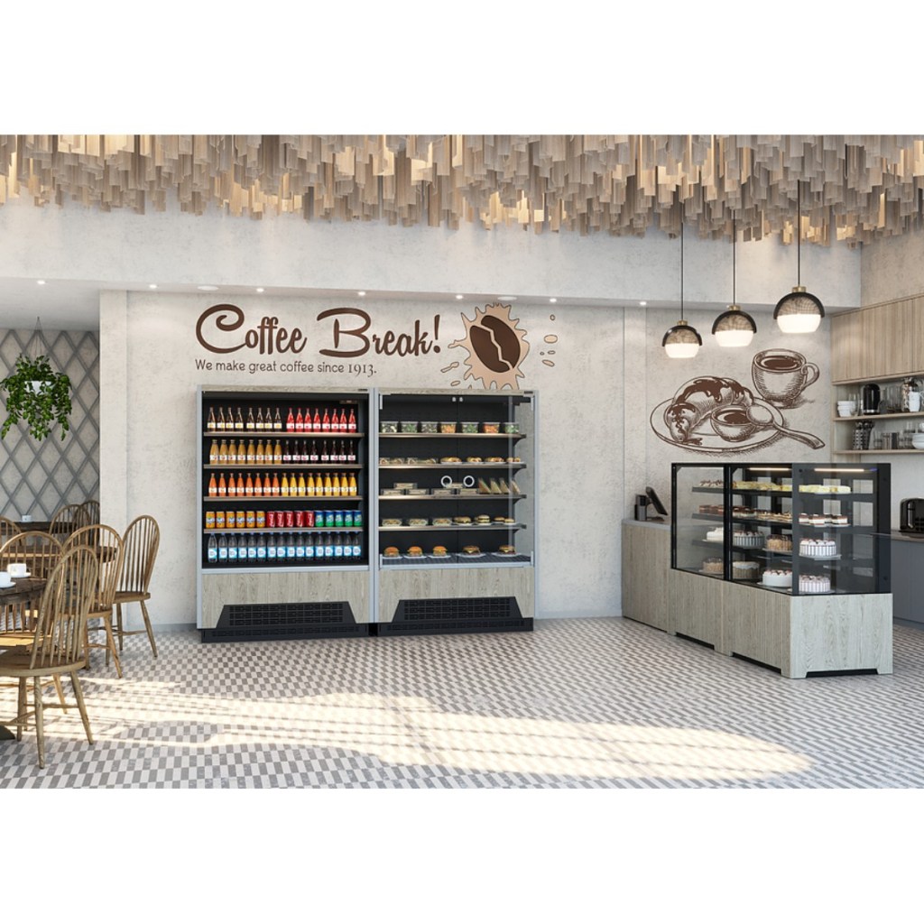 Боковины – металлические с зеркальным покрытием для улучшения обзора продукции и визуального расширения пространства