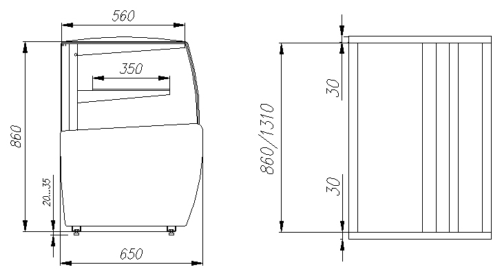 1 охлаждаемая стеклянная полка — достаточно для демонстрации небольшого ассортимента продукции.
