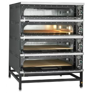 Тепловая камера с размерами 1050×780×176 мм позволяет выпекать сразу несколько заготовок, обеспечивая высокую производительность. Внутри установлен под из натурального шамотного камня толщиной 20 мм. Благодаря этому тепло распределяется равномерно по всей поверхности, пицца пропекается качественно и быстро, а тесто приобретает традиционную хрустящую текстуру. Материал пода — фельзит — также способствует удержанию высокой температуры в течение всего цикла.