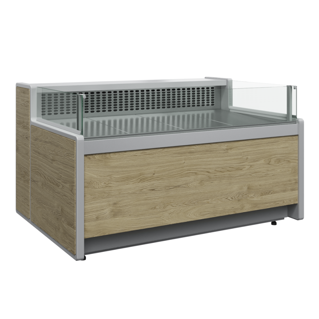 • Открытая витрина — обеспечивает лёгкий доступ к продуктам без фронтального стекла.