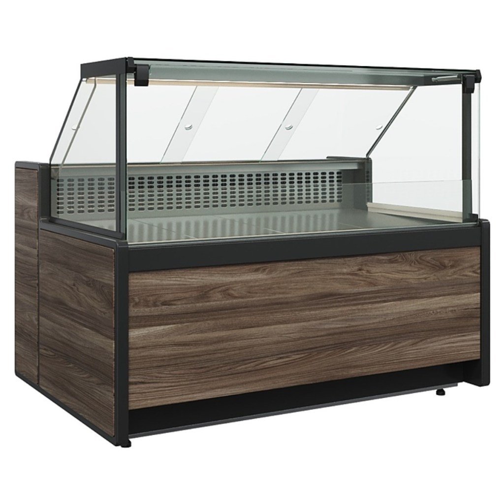Витрина холодильная Carboma GC111 SP 2,0-1 (1008 Темный дуб) (газлифт без боковин) предназначена для предприятий общественного питания и торговли. Она используется для охлаждения, кратковременного хранения, демонстрации и продажи гастрономических изделий, салатов и молочной продукции.