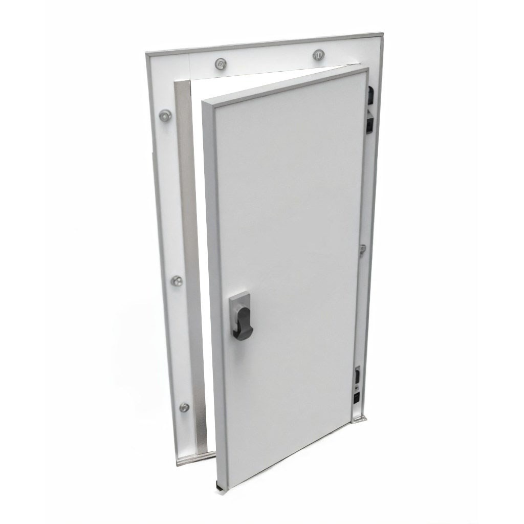 Каталог оборудования Холодильное оборудованиеДвери для холодильных камерРаспашные одностворчатые холодильные двериДверь холодильная распашная одностворчатая СТ-РДО-900*2200/80 (с металлической рамой) Дверь холодильная распашная одностворчатая СТ-РДО-900*2200/80 (с металлической рамой) Код товара: 065-856 Поделиться: WhatsAppTelegram СравнитьДобавить в КПВ избранное 0 38 440 ₽ В корзину 0 шт Под заказСамовывоз сегодня бесплатно Взять в кредит Купить в лизинг Получить консультацию в WhatsApp Описание Характеристики Отзывы 0 Инструкции 1 Дверь холодильная распашная одностворчатая СТ-РДО-900*2200/80 (с металлической рамой) – это надежное и энергоэффективное решение для установки на предприятиях пищевой промышленности, в логистических центрах, на складах и терминалах. Дверь спроектирована для стабильной работы в условиях пониженных температур, что делает её оптимальным выбором для объектов с повышенными требованиями к сохранности продукции. В среднетемпературном исполнении СТ-80 дверь предназначена для эксплуатации при температурах до –5°. Особенности: Теплоизоляция: плита из пенополиуретана Dow Izolan высокой плотности (40–45 кг/м³) обеспечивает минимальные теплопотери, не содержит вредных хлорфторуглеродов и безопасна для пищевых производств. Пожаробезопасность: предел огнестойкости EI 15 позволяет использовать дверь в зонах с повышенными требованиями к безопасности. Конструкция: прочная рама из анодированного алюминия устойчива к коррозии, дверное полотно покрыто оцинкованной сталью толщиной 0,45–0,65 мм с полиэфирным слоем (RAL 9003), что обеспечивает долговечность и гигиеничность. Герметичность: двухконтурное резиновое уплотнение сотовой структуры на ПВХ-основе исключает мосты холода и обеспечивает надежное удержание температуры. Фурнитура: комплектуется надежной европейской фурнитурой. Замок оснащён системой аварийного открывания с флуоресцентной маркировкой, что исключает риск блокировки персонала внутри камеры. Холодильная дверь СТ-РДО-900*2200/80 сочетает в себе прочность, долговечность и высокую энергоэффективность. Она гарантирует надежное сохранение температурного режима и безопасность эксплуатации, полностью соответствуя требованиям предприятий пищевой отрасли и объектов хранения.Изображение товара, представленного на фото, может отличаться от его фактического вида. Показать все Ширина светового проема900 ммВысота светового проема2200 ммТемпературный режимСреднетемпературный (от -5 до +5) Толщина двери80 ммОткрываниеЛевое/Правое Замок с аварийным открываниемДа БрендСевер Оставить отзыв Еще никто не оставил отзыв на этот товар Буклет двери изотермические и технологические ТМ Север.pdf Ранее просмотрено Под заказ 47 328 ₽ Дверь холодильная распашная одностворчатая НТ-РДО-800*2100/120 (с металлической рамой)