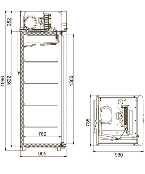Каталог оборудования Холодильное оборудованиеШкафы холодильныеШкафы морозильные низкотемпературные до -18 °СШкаф морозильный Polair Polair CB107-Gm Alu Шкаф морозильный Polair Polair CB107-Gm Alu Код товара: 062-591 Поделиться: WhatsAppTelegram СравнитьДобавить в КПВ избранное 0 165 920 ₽ В корзину 0 шт Под заказСамовывоз сегодня бесплатно Взять в кредит Купить в лизинг Получить консультацию в WhatsApp Описание Характеристики Отзывы 0 Инструкции 4 Шкаф морозильный Polair Polair CB107-Gm Alu разработан для демонстрации и надежного хранения продуктов на предприятиях общественного питания и торговли. Цельнозаливной корпус выполнен из нержавеющей стали как снаружи, так и внутри (кроме задней стенки), что гарантирует высокую прочность и долговечность конструкции. Алюминиевые профили дверей и верхней панели подчеркивают современный и премиальный внешний вид шкафа. Оборудование рассчитано на работу при температуре окружающей среды до +40 °С и относительной влажности воздуха до 80%, что делает его надежным решением даже в сложных условиях эксплуатации. Основные особенности: Многофункциональная контрольная панель с жидкокристаллическим дисплеем Верхнее расположение агрегата, обеспечивающее удобный доступ к внутреннему объему Поддержка дистанционного мониторинга и записи данных в журнал контроллера (при использовании сетевой карты), а также передача данных через Bluetooth Клапан Шредера и компенсационный клапан с ПЭНом обогрева ПЭН обогрева трубки слива конденсата и ПЭН обогрева дверного проема для предотвращения образования наледи Распашные двери с полностью интегрированными ручками и эластичными магнитными уплотнителями, обеспечивающими максимальную герметизацию Микропереключатель, отключающий вентилятор и включающий подсветку при открытии дверей Встроенная внутренняя подсветка, улучшающая обзор содержимого Регулируемые по высоте ножки и педаль для удобного открывания двери Замок для обеспечения безопасности хранения 4 полки формата GN 2/1 (530×650 мм) с допустимой нагрузкой до 40 кг Толщина теплоизоляции корпуса — 61 мм Изображение товара, представленного на фото, может отличаться от его фактического вида. Показать все Габаритные размеры735×945×1996 ммДиапазон рабочей температурыдо -18 °CДлина735 ммГлубина450 ммВысота1996 ммОбъём700 лМатериал корпусаНержавеющая сталь Тип охлажденияДинамическое Тип управленияМеханическое Расход электроэнергии в сутки12 кВтКоличество полок2 штКоличество дверей1 штЗамокЕсть Тип двериМеталлическая Способ открыванияРаздвижные (купе) Напряжение220 ВХладагентR290 Расположение агрегатаНижнее Габариты в упаковке850×988×2160 ммВес нетто128 кгВес брутто152 кгБрендPolairВсе шкафы морозильные низкотемпературные до -18 °С POLAIRВсе шкафы морозильные низкотемпературные до -18 °С 4 уровня Оставить отзыв Еще никто не оставил отзыв на этот товар Схема POLAIR CB107-Gm Alu.jpgИнструкция на POLAIR CB107-Gm Alu.pdfДекларация о соответствии.pdfСертификат соответствия.pdf Похожие товары Перейти в каталог Под заказ 213 194 ₽ Шкаф морозильный Полюс Carboma F1400 INOX Под заказ 219 211 ₽ Шкаф морозильный Abat ШХн-1,4-01 нерж. Под заказ 144 912 ₽ Шкаф морозильный Abat ШХн-0,7-02 В наличии 142 290 ₽ Шкаф морозильный Polair СВ107-Sm В наличии 111 644 ₽ Шкаф морозильный Polair DB105-S Под заказ 189 702 ₽ Шкаф морозильный Kayman К1500-М Под заказ 123 026 ₽ Шкаф морозильный Abat ШХн-0,5 Под заказ 157 884 ₽ Шкаф морозильный Ангара 1500 РБК С этим товаром покупают Под зака