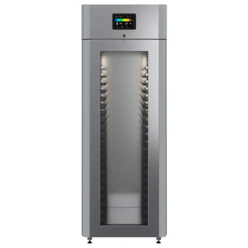 Каталог оборудования Холодильное оборудованиеШкафы холодильныеСпециализированные холодильные шкафыШкаф холодильный для хлебопекарных производств Polair CS107-Bakery Br со стеклом (Тип 1) Шкаф холодильный для хлебопекарных производств Polair CS107-Bakery Br со стеклом (Тип 1) Код товара: 062-622 Поделиться: WhatsAppTelegram СравнитьДобавить в КПВ избранное 0 414 545 ₽ В корзину 0 шт Под заказСамовывоз сегодня бесплатно Взять в кредит Купить в лизинг Получить консультацию в WhatsApp Описание Характеристики Отзывы 0 Инструкции 5 Шкаф холодильный для хлебопекарных производств Polair CS107-Bakery Br со стеклом (Тип 1) предназначен для создания оптимальных условий хранения и расстойки заготовок из теста на предприятиях общественного питания и торговли. Цельнозаливной корпус выполнен из нержавеющей стали, дверь — стеклопакет. Оборудование стабильно работает при температуре окружающей среды до +40 °C. В комплект входят 20 пар направляющих размером 400×600 мм. Особенности: Широкий функционал: охлаждение, замедление ферментации, хранение, регенерация, брожение и расстойка Динамическое охлаждение с мягким обдувом без заветривания и автоматическая оттайка с системой испарения конденсата Панель управления с 5" дисплеем: контроль температуры, влажности (регулируется от 60 до 95 %), скорости вентилятора и времени, а также возможность создания и сохранения программ Встроенный ультразвуковой увлажнитель (необходима система водоочистки и канализация) Эргономичная конструкция: верхнее расположение агрегата, распашная дверь со стеклопакетом, механизм самозакрывания, педаль для открытия, съёмные направляющие и легко заменяемый уплотнитель с магнитной вставкой Дополнительная защита: пластиковый бордюр по периметру камеры для предотвращения повреждений от тележек Простота ухода: штампованное углубление в дне корпуса для сбора загрязнений Экологичный хладагент R290 и энергоэффективность: потребляемая мощность — 0,55 кВт (охлаждение), 0,9 кВт (нагрев) Толщина стенки корпуса — 43 мм Polair CS107-Bakery Br со стеклом (Тип 1) — надёжный и многофункциональный шкаф, который обеспечивает полное управление процессами брожения и расстойки теста. Современная система охлаждения и увлажнения, продуманная конструкция и удобное управление делают его оптимальным решением для пекарен и кондитерских, стремящихся к стабильному качеству и высокой производительности.Изображение товара, представленного на фото, может отличаться от его фактического вида. Показать все Габаритные размеры697×1005×1960 ммДиапазон рабочей температурыот -10 до +40 °CДлина697 ммШирина1005 ммВысота1960 ммОбъём700 лКол-во дверей1 Тип двериСтеклянная Уровень влажностиот 60 до 95 %Направляющие под EN 40*6020 Расстояние между направляющими60 ммХолодильный агрегатВстроенный Тип оттайкиАвтоматическая Тип охлажденияДинамический ПодсветкаЕсть ХладагентR290 Вес нетто180 кгБрендPolairВсе специализированные холодильные шкафы Из нержавейки Оставить отзыв Еще никто не оставил отзыв на этот товар Схема POLAIR CS107 Bakery Br.jpgИнструкция на POLAIR CS107 Bakery Br.pdfБрошюра на хлебопекарное оборудование POLAIR.pdfДекларация о соответствии.pdfСертификат соответствия.pdf Похожие товары Перейти в каталог Под заказ 405 450 ₽ Шкаф холодильный для хлебопекарных производств Polair CS107 Bakery Br черный, со стеклом (Тип 1) Под заказ 385 475 ₽ Шкаф холодильный для вызревания сыра Polair CS107 Cheese полки окраш. Под заказ 402 050 