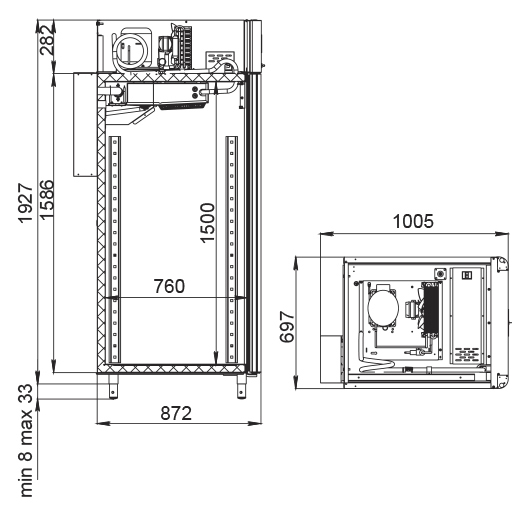Каталог оборудования Холодильное оборудованиеШкафы холодильныеСпециализированные холодильные шкафыШкаф холодильный для вызревания сыра Polair CS107 Cheese черный, со стеклом Шкаф холодильный для вызревания сыра Polair CS107 Cheese черный, со стеклом Код товара: 062-626 Поделиться: WhatsAppTelegram СравнитьДобавить в КПВ избранное 0 389 300 ₽ В корзину 0 шт Под заказСамовывоз сегодня бесплатно Взять в кредит Купить в лизинг Получить консультацию в WhatsApp Описание Характеристики Отзывы 0 Инструкции 5 Шкаф холодильный для вызревания сыра Polair CS107 Cheese черный, со стеклом предназначен для создания оптимальных условий хранения и дозревания твердых и полутвердых сыров на предприятиях общественного питания и торговли. Монолитный цельнозаливной корпус снаружи изготовлен из стали с полимерным покрытием, внутри — из нержавеющей стали, дверь выполнена из стеклопакета. Оборудование рассчитано на работу при температуре окружающей среды до 40 °С. Особенности: Верхнее расположение агрегата для эффективного охлаждения Многофункциональная русифицированная панель управления с дисплеем диагональю 5" Возможность создания и сохранения собственных программ в памяти электронного блока Четыре перфорированные полки из нержавеющей стали для удобного размещения сыров Встроенный ультразвуковой увлажнитель (требуется подключение к системе очищенной воды и централизованной канализации) Распашная дверь с заливной теплоизоляцией и заменяемым уплотнителем с магнитной вставкой Встроенная ручка для удобства эксплуатации Отключаемая внутренняя LED-подсветка Штампованное углубление в дне корпуса для облегчения ухода Педаль для бесконтактного открывания двери Регулировка уровня влажности от 60% до 95% Максимальная нагрузка на полку — 40 кг Толщина стенок корпуса — 43 мм Polair CS107 Cheese черный, со стеклом — это высокотехнологичное оборудование, которое создает идеальные условия для дозревания и хранения твердых и полутвердых сыров. Надежная конструкция, продвинутые системы увлажнения и управления обеспечивают сохранение качества и вкуса сырной продукции, повышая эффективность работы предприятий общественного питания и торговли.Изображение товара, представленного на фото, может отличаться от его фактического вида. Показать все Габаритные размеры697×1005×1960 ммДиапазон рабочей температурыот -2 до +30 °CДлина697 ммШирина1005 ммВысота1960 ммОбъём700 лКол-во дверей1 Тип двериСтеклянная Количество полок4 штДопустимая нагрузка на полку40 кгУровень влажностиот 60 до 95 %Холодильный агрегатВстроенный Тип оттайкиАвтоматическая Тип охлажденияДинамическое ПодсветкаЕсть ХладагентR290 Вес нетто160 кгВес брутто190 кгБрендPolairВсе специализированные холодильные шкафы Из нержавейкиВсе специализированные холодильные шкафы Стеклянная дверь Оставить отзыв Еще никто не оставил отзыв на этот товар Схема POLAIR CS107 Cheese.jpgИнструкция на POLAIR CS107 Cheese.pdfБрошюра на POLAIR CS107 Cheese.pdfДекларация о соответствии.pdfСертификат соответствия.pdf Похожие товары Перейти в каталог Под заказ 169 915 ₽ Шкаф холодильный для хлебопекарных производств Polair CS107 Bakery Bs Под заказ 405 450 ₽ Шкаф холодильный для хлебопекарных производств Polair CS107 Bakery Br черный, со стеклом (Тип 1) Под заказ 118 831 ₽ Шкаф холодильный HURAKAN HKN-MA100 для созревания мяса Под заказ 207 942 ₽ Шкаф холодильный HURAKAN HKN-MA350 для созревания мяса Под заказ 397 800 ₽ Шкаф холодильный для вызреван