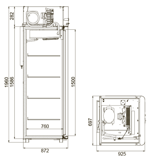 Каталог оборудования Холодильное оборудованиеШкафы холодильныеШкафы холодильные универсальные от -5 до +5 °СШкаф холодильный универсальный Polair CV107-Gm Alu Шкаф холодильный универсальный Polair CV107-Gm Alu Код товара: 062-610 Поделиться: WhatsAppTelegram СравнитьДобавить в КПВ избранное 0 149 175 ₽ В корзину 0 шт Под заказСамовывоз сегодня бесплатно Взять в кредит Купить в лизинг Получить консультацию в WhatsApp Описание Характеристики Отзывы 0 Инструкции 4 Шкаф холодильный универсальный Polair CV107-Gm Alu предназначен для демонстрации и надежного хранения продуктов на предприятиях общественного питания и торговли. Корпус шкафа цельнозаливной, выполнен из прочной стали с полимерным покрытием, что гарантирует высокую механическую прочность и длительный срок службы. Алюминиевые профили дверей и верхней панели подчеркивают современный, премиальный дизайн. Оборудование эффективно работает при температуре окружающей среды до 40 °С и влажности воздуха до 80%. Особенности модели: Многофункциональная контрольная панель (терморегулятор) для удобного управления параметрами. Жидкокристаллический дисплей, обеспечивающий чёткое отображение настроек и информации о работе шкафа. Клапан Шредера для удобного обслуживания холодильного контура. Распашной тип двери для легкого доступа к продуктам. Возможность изменить сторону открывания двери (при наличии опции), что делает установку более универсальной. Полностью интегрированные в профили дверей ручки, подчеркивающие стильный внешний вид и удобство использования. Встроенная светодиодная подсветка для отличной видимости содержимого шкафа. Надежный замок для защиты продуктов. Педаль для удобного открывания двери без использования рук. Высокая допустимая нагрузка на полку — до 40 кг, что позволяет хранить большие объемы продукции. Размер полки: GN 2/1 (530×650 мм), подходит для стандартных гастроемкостей. Толщина стенки корпуса — 43 мм, обеспечивающая отличную теплоизоляцию и снижение энергопотерь. Polair CV107-Gm Alu — это функциональный и стильный холодильный шкаф, который сочетает надежность, эргономичный дизайн и удобство эксплуатации. Использование прочных материалов и продуманная конструкция делают его идеальным решением для профессиональной кухни или торгового зала.Изображение товара, представленного на фото, может отличаться от его фактического вида. Показать все Габаритные размеры697×925×1960 ммДиапазон рабочей температурыот -5 до +5 °CДлина697 ммГлубина925 ммВысота695 ммОбъём700 лРазмер полки530×650 ммКоличество полок4 штКоличество дверей1 штТип оттайкиАвтоматическая Тип охлажденияДинамическое Тип управленияЭлектронное Материал корпусаНержавеющая сталь Тип двериМеталлическая ЗамокЕсть Способ открыванияРаспашные ХладагентR290 Холодильный агрегатВстроенный Расположение агрегатаВерхнее Потребление электроэнергии в сутки4,5 кВтПотребляемая мощность0,4 кВтНапряжение220 ВГабариты в упаковке800×1000×2150 ммВес нетто115 кгВес брутто140 кгБрендPolairВсе шкафы холодильные универсальные от -5 до +5 °С Из нержавейки Оставить отзыв Еще никто не оставил отзыв на этот товар Схема POLAIR CV107-Gm Alu.jpgИнструкция на POLAIR CV107-Gm Alu.pdfДекларация о соответствии.pdfСертификат соответствия.pdf Похожие товары Перейти в каталог Под заказ 161 340 ₽ Шкаф холодильный Abat ШХ-1,0 Под заказ 132 142 ₽ Шкаф холодильный универсальный Ариада Рапсодия R 1400 VC В наличии 95 458 ₽ Шкаф х