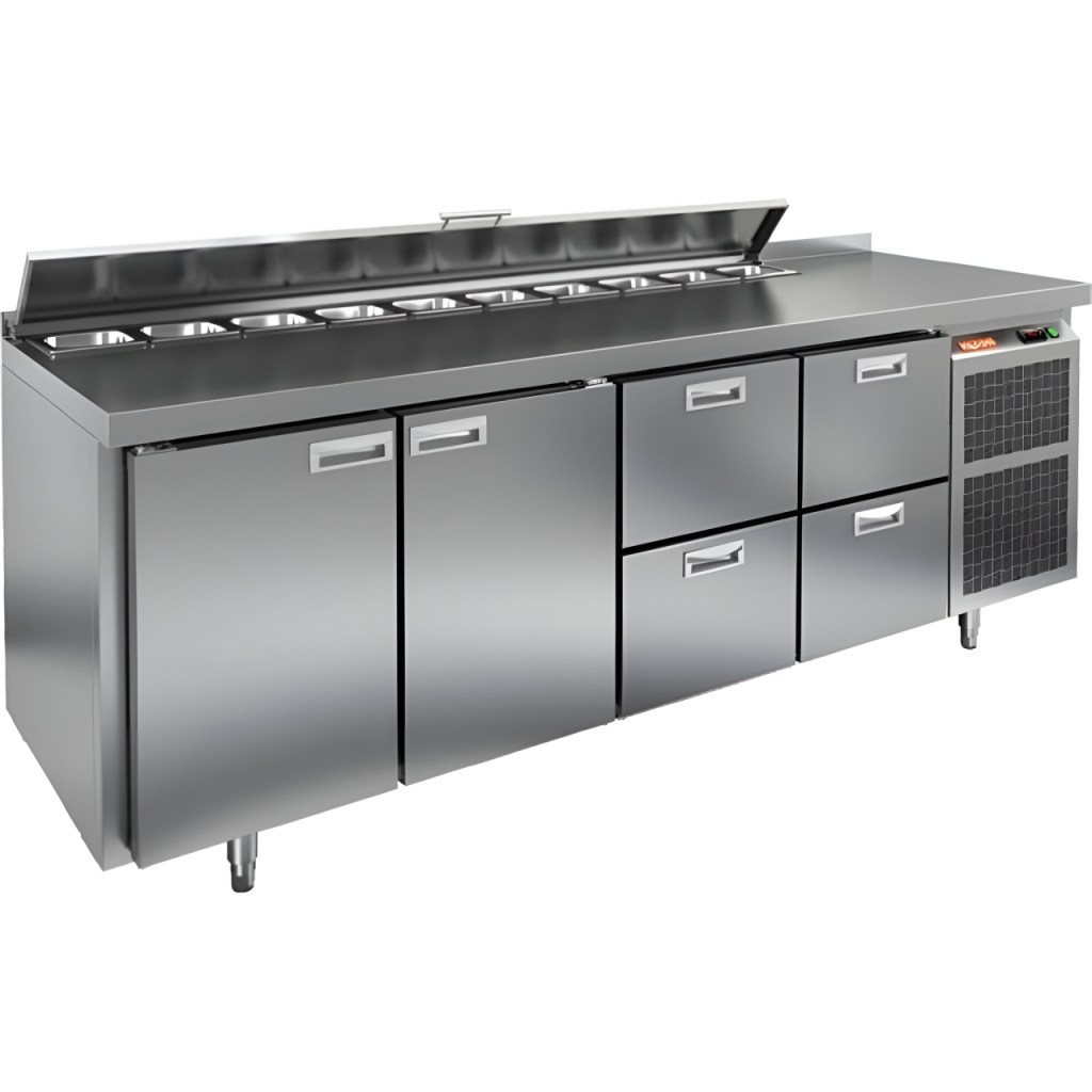 Каталог оборудования Холодильное оборудованиеСтолы охлаждаемыеСтолы холодильные для салатовСтол холодильный для салатов HiCold SL1-332GN (1/3) с крышкой Стол холодильный для салатов HiCold SL1-332GN (1/3) с крышкой Код товара: 064-851 Поделиться: WhatsAppTelegram СравнитьДобавить в КПВ избранное 0 290 692 ₽ В корзину 0 шт Под заказСамовывоз сегодня бесплатно Взять в кредит Купить в лизинг Получить консультацию в WhatsApp Описание Характеристики Отзывы 0 Инструкции 1 Стол холодильный для салатов HiCold SL1-332GN (1/3) предназначен для использования на предприятиях общественного питания и торговли. Он объединяет рабочую поверхность и охлаждаемый отсек, что делает его удобным решением для хранения, охлаждения и подготовки ингредиентов при приготовлении салатов, пиццы и других блюд. Такая конструкция позволяет повару работать быстрее и эффективнее, так как все необходимые продукты находятся под рукой. Корпус и столешница выполнены из прочной нержавеющей стали, устойчивой к коррозии и легко поддающейся санитарной обработке. Металлическая крышка защищает продукты от загрязнений и сохраняет их свежесть. Особенности модели: Электронная панель управления — точная настройка температурного режима. 8 выдвижных ящика — быстрое размещение и замена продуктов. Вместимость салат-бара — до 8 гастроемкостей глубиной до 100 мм. Автоматические доводчики — комфорт при загрузке/выгрузке. Легкозаменяемые магнитные уплотнители — надежная герметичность. Открытая агрегатная часть — быстрый доступ для обслуживания. Регулируемые по высоте ножки — устойчивость даже на неровном полу. Толщина столешницы, борта и теплоизоляции — 50 мм, что обеспечивает прочность и энергоэффективность конструкции. HiCold SL1-332GN (1/3) — практичное и удобное решение для профессиональной кухни, обеспечивающее удобную подготовку и хранение ингредиентов.Изображение товара, представленного на фото, может отличаться от его фактического вида. Показать все Габаритные размеры1835×700×850 ммДиапазон рабочей температурыот +2 до +10 °CРасположение агрегатаБоковое Материал столешницыНержавеющая Тип столаС дверьми и ящиками Тип двериГлухая Объём505 лКоличество дверей2 штТип гастроемкостейGN 1/3 Количество ящиков6 штРазмер полки530×325 ммНапряжение220 ВМощность0,46 кВтТип охлажденияДинамическое Тип оттайкиАвтоматическая СтолешницаС бортом Габариты в упаковке2000×850×1000 ммВес нетто120 кгВес брутто140 кгБрендHicold Оставить отзыв Еще никто не оставил отзыв на этот товар Декларация о соответствии.pdf Ранее просмотрено Под заказ 201 682 ₽ Стол холодильный для салатов HiCold SL2-22GN (1/6) без крышки Под заказ 239 032 ₽ Стол холодильный для салатов HiCold SLE2-222GN (1/6) О с крышкой Под заказ 165 772 ₽ Стол холодильный для салатов HiCold SL2-11GN (1/6) М с крышкой Под заказ 198 892 ₽ Стол холодильный для салатов HiCold SL1-112GN (1/3) с крышкой