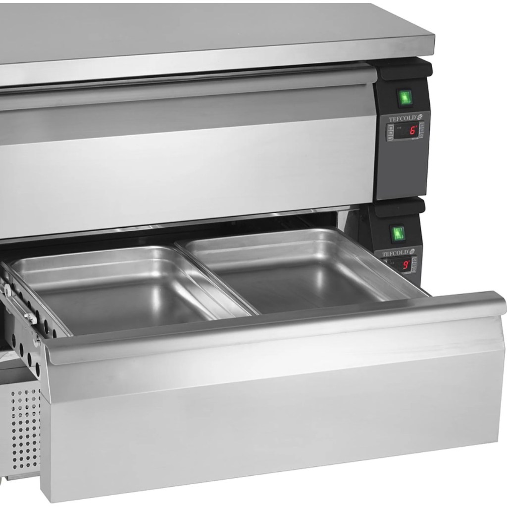 TEFCOLD UNI-DRAWER UD2-2 — компактный и функциональный холодильный стол, сочетающий удобство работы и надёжное охлаждение. Благодаря прочной конструкции из нержавеющей стали, вместительным ящикам и возможности выбора режима работы (охлаждение или заморозка), модель идеально подходит для профессиональных кухонь и предприятий общественного питания.