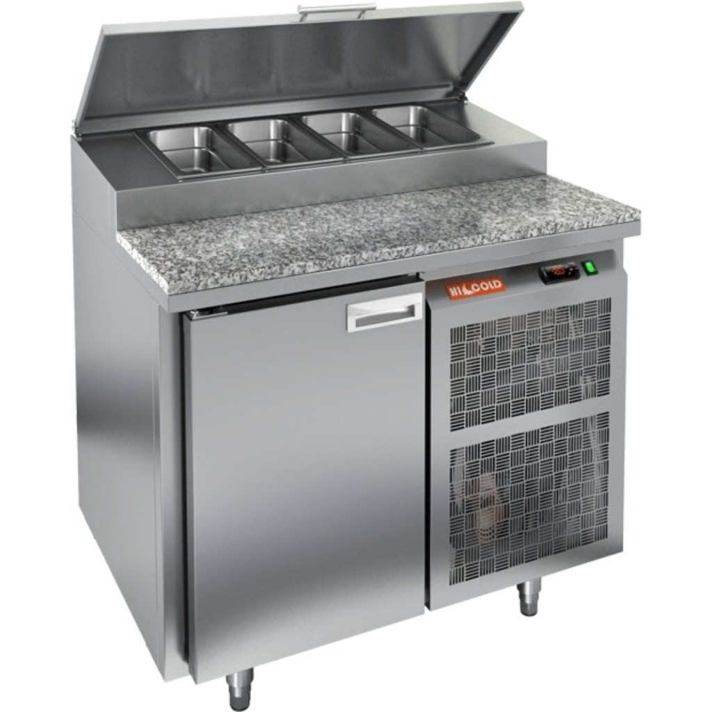 Стол холодильный для пиццы HiCold PZ1-1/GN (1/3H) камень (R290) используется на предприятиях общественного питания и торговли для раскатки теста и обработки ингредиентов, используемых для приготовления пиццы, салатов и других блюд, а также для охлаждения и кратковременного хранения скоропортящихся продуктов и напитков. Модель совмещает в себе рабочую поверхность и охлаждаемый объем, что значительно упрощает работу повара, так как все необходимые компоненты всегда находятся под рукой.