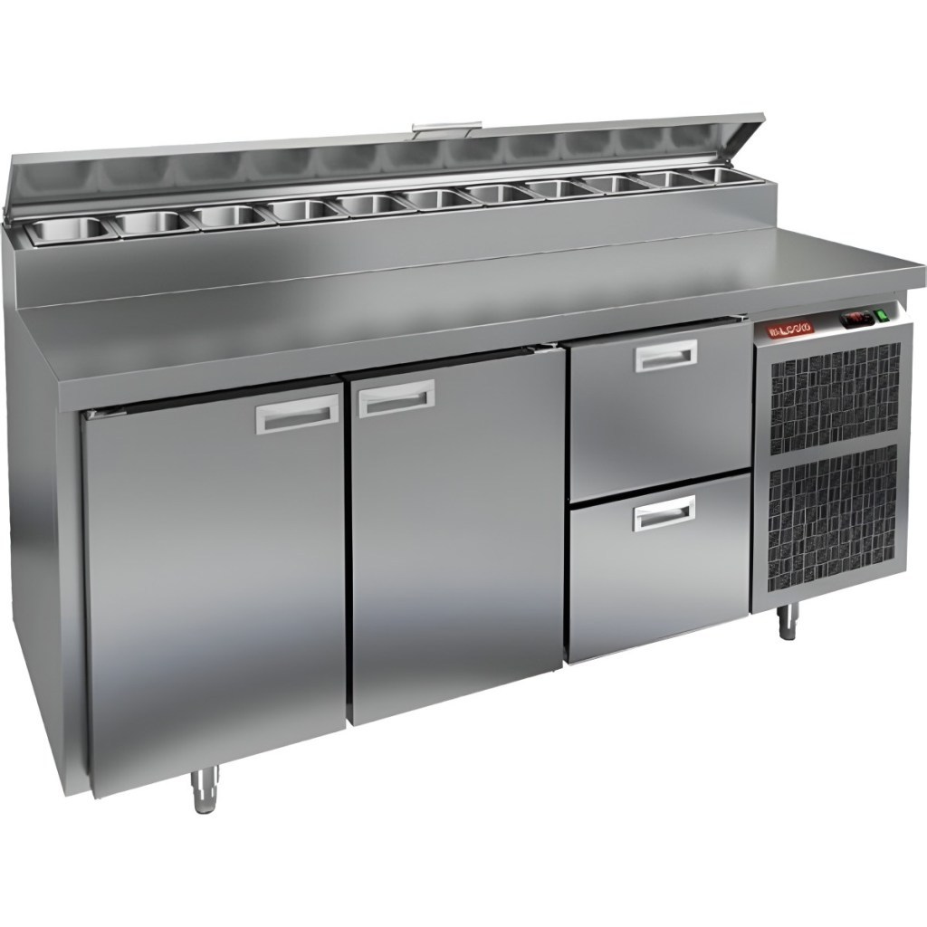 Каталог оборудования Холодильное оборудованиеСтолы охлаждаемыеСтолы холодильные для пиццыСтол холодильный для пиццы HiCold PZ1-112GN (1/3H) Стол холодильный для пиццы HiCold PZ1-112GN (1/3H) Код товара: 064-691 Поделиться: WhatsAppTelegram СравнитьДобавить в КПВ избранное 0 244 971 ₽ В корзину 0 шт Под заказСамовывоз сегодня бесплатно Взять в кредит Купить в лизинг Получить консультацию в WhatsApp Описание Характеристики Отзывы 0 Стол холодильный для пиццы HiCold PZ1-112GN (1/3H) — профессиональное оборудование для ресторанов, кафе и предприятий торговли. Он совмещает рабочую поверхность для раскатки теста и подготовки ингредиентов с охлаждаемым блоком для кратковременного хранения продуктов и напитков. Корпус и столешница выполнены из нержавеющей стали, что гарантирует долговечность и лёгкость ухода. Основные особенности: Динамическая система охлаждения — равномерное распределение холода Автоматическая оттайка — поддержка стабильной работы без наледи Электронная панель управления — точная настройка температуры и режимов 2 вместительные полки формата GN 1/1 2 выдвижных ящика для хранения дополнительных ингредиентов Автоматические доводчики дверей с фиксатором открытого положения — удобство загрузки и выгрузки Легкозаменяемые магнитные уплотнители — поддержание герметичности Открытая агрегатная часть — облегчённый доступ к техническим элементам Регулируемые по высоте ножки — установка по уровню Максимальная глубина гастроёмкостей: 150 мм (крайняя правая — 100 мм) Глубина рабочей поверхности: 324 мм Толщина столешницы и теплоизоляции: 50 мм Вместимость салат-бара: до 10 гастроёмкостей Стол холодильный HiCold PZ1-112GN (1/3H) — функциональный и удобный стол для пиццы и салатов, совмещающий рабочую поверхность, охлаждаемый блок, полки и ящики для хранения. Разная глубина гастроёмкостей и продуманная организация рабочего пространства делают его оптимальным решением для профессиональной кухни.Изображение товара, представленного на фото, может отличаться от его фактического вида. Показать все Габаритные размеры1835×700×1000 ммДиапазон рабочей температурыот +2 до +10 °CРасположение агрегатаБоковое Материал столешницыНержавеющая Тип столаС дверьми и ящиками Тип двериГлухая Объём505 лТип гастроемкостейGN 1/3 Количество дверей2 штКоличество ящиков2 штРазмер полки530×325 ммНапряжение220 ВМощность0,5 кВтТип охлажденияДинамическое Тип оттайкиАвтоматическая Габариты в упаковке2000×850×1140 ммВес нетто172 кгВес брутто200 кгБрендHicoldВсе холодильные столы для пиццы HicoldВсе нержавеющие холодильные столы для пиццы Оставить отзыв Еще никто не оставил отзыв на этот товар Ранее просмотрено Под заказ 206 541 ₽ Стол холодильный для пиццы HiCold PZ1-11GN (1/3) М Под заказ 273 142 ₽ Стол холодильный для пиццы HiCold PZ1-1111GN (1/3) M Под заказ 260 272 ₽ Стол холодильный для пиццы HiCold PZ1-113GN (1/3H) Под заказ 250 822 ₽ Стол холодильный для пиццы HiCold PZE1-1112/GN (1/3) Под заказ 306 171 ₽ Стол холодильный для пиццы HiCold PZ1-222GN (1/3H)