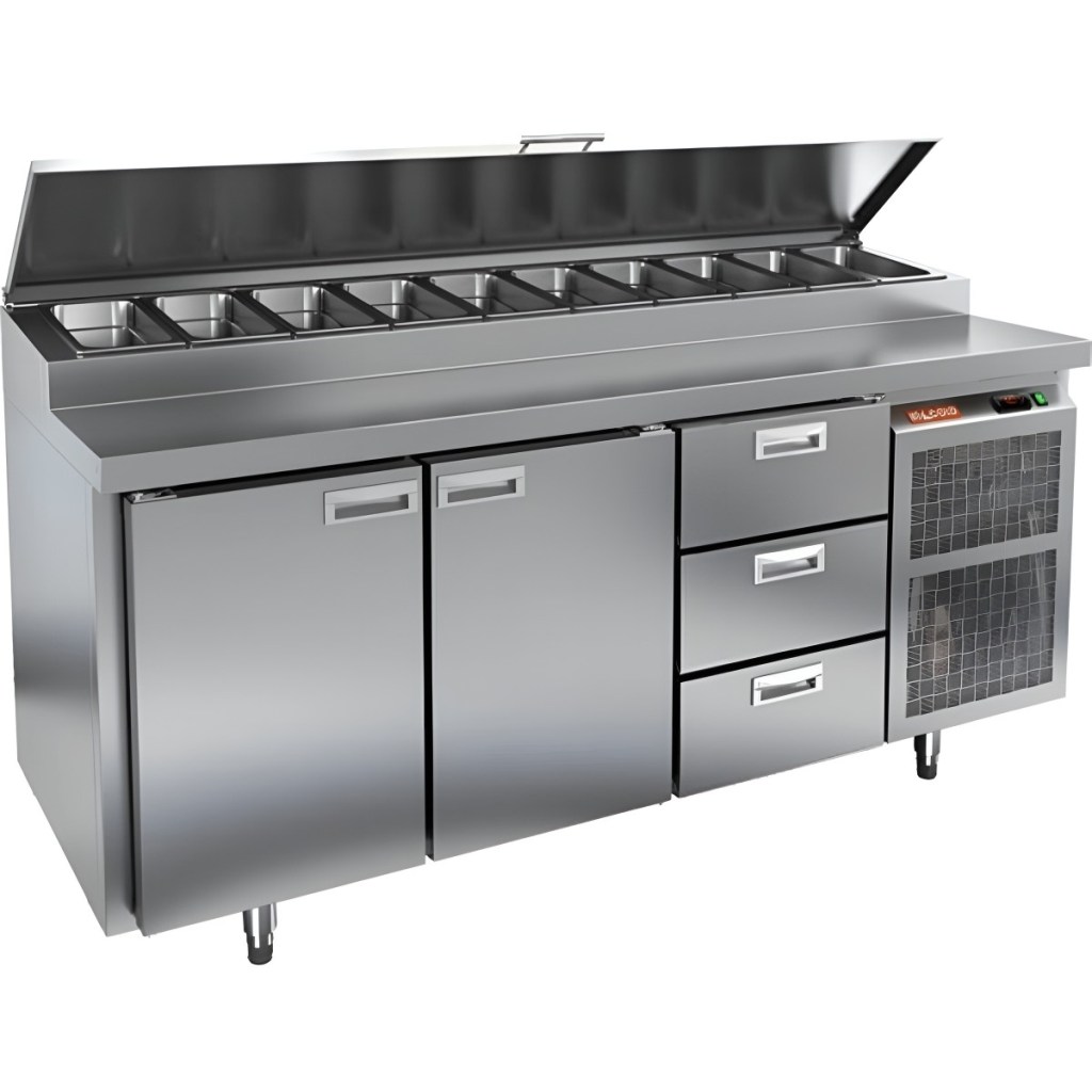 Каталог оборудования Холодильное оборудованиеСтолы охлаждаемыеСтолы холодильные для пиццыСтол холодильный для пиццы HiCold PZ1-113GN (1/3H) Стол холодильный для пиццы HiCold PZ1-113GN (1/3H) Код товара: 064-692 Поделиться: WhatsAppTelegram СравнитьДобавить в КПВ избранное 0 260 272 ₽ В корзину 0 шт Под заказСамовывоз сегодня бесплатно Взять в кредит Купить в лизинг Получить консультацию в WhatsApp Описание Характеристики Отзывы 0 Инструкции 2 Стол холодильный для пиццы HiCold PZ1-113GN (1/3H) — профессиональное оборудование для ресторанов, кафе и предприятий торговли. Он совмещает рабочую поверхность для раскатки теста и подготовки ингредиентов с охлаждаемым блоком для кратковременного хранения продуктов и напитков. Корпус и столешница выполнены из нержавеющей стали, что гарантирует долговечность и лёгкость ухода. Основные особенности: Динамическая система охлаждения — равномерное распределение холода Автоматическая оттайка — поддержка стабильной работы без наледи Электронная панель управления — точная настройка температуры и режимов 2 вместительные полки формата GN 1/1 3 выдвижных ящика для хранения дополнительных ингредиентов Автоматические доводчики дверей с фиксатором открытого положения — удобство загрузки и выгрузки Легкозаменяемые магнитные уплотнители — поддержание герметичности Открытая агрегатная часть — облегчённый доступ к техническим элементам Регулируемые по высоте ножки — установка по уровню Максимальная глубина гастроёмкостей: 150 мм (крайняя правая — 100 мм) Глубина рабочей поверхности: 324 мм Толщина столешницы и теплоизоляции: 50 мм Вместимость салат-бара: до 10 гастроёмкостей Стол холодильный HiCold PZ1-113GN (1/3H) — функциональный и удобный стол для пиццы и салатов, совмещающий рабочую поверхность, охлаждаемый блок, полки и ящики для хранения. Разная глубина гастроёмкостей и продуманная организация рабочего пространства делают его оптимальным решением для профессиональной кухни.Изображение товара, представленного на фото, может отличаться от его фактического вида. Показать все Габаритные размеры1835×700×1000 ммДиапазон рабочей температурыот +2 до +10 °CРасположение агрегатаБоковое Материал столешницыНержавеющая Тип столаС дверьми и ящиками Тип двериГлухая Объём505 лТип гастроемкостейGN 1/3 Количество дверей2 штКоличество ящиков3 штРазмер полки530×325 ммНапряжение220 ВМощность0,5 кВтТип охлажденияДинамическое Тип оттайкиАвтоматическая Габариты в упаковке2000×850×1140 ммВес нетто172 кгВес брутто200 кгБрендHicoldВсе холодильные столы для пиццы HicoldВсе нержавеющие холодильные столы для пиццы Оставить отзыв Еще никто не оставил отзыв на этот товар Паспорт на HICOLD PZ1-113GN.pdfДекларация о соответствии.pdf Ранее просмотрено Под заказ 250 822 ₽ Стол холодильный для пиццы HiCold PZE1-1112/GN (1/3) Под заказ 306 171 ₽ Стол холодильный для пиццы HiCold PZ1-222GN (1/3H)