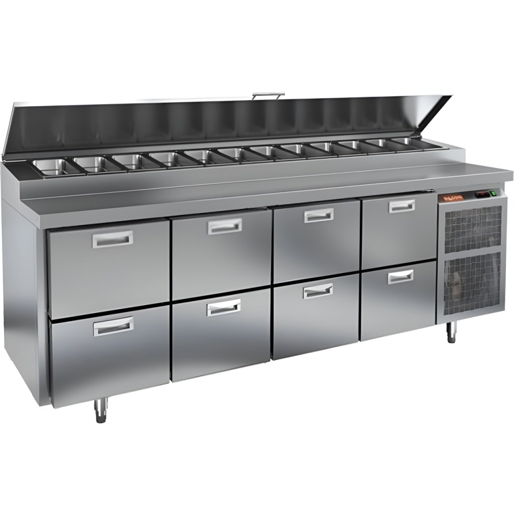 Каталог оборудования Холодильное оборудованиеСтолы охлаждаемыеСтолы холодильные для пиццыСтол холодильный для пиццы HiCold PZ1-2222GN (1/3H) Стол холодильный для пиццы HiCold PZ1-2222GN (1/3H) Код товара: 064-713 Поделиться: WhatsAppTelegram СравнитьДобавить в КПВ избранное 0 373 042 ₽ В корзину 0 шт Под заказСамовывоз сегодня бесплатно Взять в кредит Купить в лизинг Получить консультацию в WhatsApp Описание Характеристики Отзывы 0 Стол холодильный для пиццы HiCold PZ1-2222GN (1/3H) — профессиональное оборудование для предприятий общественного питания и торговли. Он сочетает рабочую поверхность для раскатки теста и подготовки ингредиентов с охлаждаемым блоком для кратковременного хранения скоропортящихся продуктов и напитков. Такое решение обеспечивает максимальное удобство — все необходимые компоненты всегда находятся под рукой. Корпус и столешница выполнены из нержавеющей стали, что гарантирует долговечность, устойчивость к повреждениям и лёгкость ухода. Основные особенности: Нержавеющая столешница и корпус — прочность, гигиеничность и лёгкость очистки Динамическая система охлаждения — равномерное распределение холода Автоматическая оттайка — стабильная работа без образования наледи Электронная панель управления — точная настройка температуры 8 выдвижных ящиков — удобная организация внутреннего пространства без дверцы Автоматические доводчики ящиков — комфорт при работе Легкозаменяемые магнитные уплотнители — поддержание герметичности Открытая агрегатная часть — лёгкий доступ для обслуживания Регулируемые по высоте ножки — установка на неровных поверхностях Максимальная глубина гастроёмкостей: 100 мм Глубина рабочей поверхности: 324 мм Толщина столешницы и теплоизоляции: 50 мм Вместимость салат-бара: до 12 гастроёмкостей Стол холодильный HiCold PZ1-2222GN (1/3H) — надёжный и функциональный холодильный стол для пиццы и салатов. Отсутствие дверцы и продуманная система хранения обеспечивают быстрый доступ к ингредиентам, удобство эксплуатации и высокую производительность на профессиональной кухне.Изображение товара, представленного на фото, может отличаться от его фактического вида. Показать все Габаритные размеры2280×700×1000 ммДиапазон рабочей температурыот +2 до +10 °CРасположение агрегатаБоковое Материал столешницыНержавеющая Тип столаС ящиками Объём660 лТип гастроемкостейGN 1/3 Количество ящиков8 штНапряжение220 ВМощность0,5 кВтТип охлажденияДинамическое Тип оттайкиАвтоматическая Габариты в упаковке2420×850×1080 ммВес нетто170 кгВес брутто236 кгБрендHicoldВсе холодильные столы для пиццы HicoldВсе нержавеющие холодильные столы для пиццы Оставить отзыв Еще никто не оставил отзыв на этот товар Ранее просмотрено Под заказ 282 141 ₽ Стол холодильный для пиццы HiCold PZE3-112/GN камень
