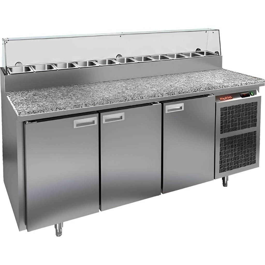 Каталог оборудования Холодильное оборудованиеСтолы охлаждаемыеСтолы холодильные для пиццыСтол холодильный для пиццы HiCold PZ2-111GN (1/6) камень со стеклом Стол холодильный для пиццы HiCold PZ2-111GN (1/6) камень со стеклом Код товара: 064-742 Поделиться: WhatsAppTelegram СравнитьДобавить в КПВ избранное 0 256 672 ₽ В корзину 0 шт Под заказСамовывоз сегодня бесплатно Взять в кредит Купить в лизинг Получить консультацию в Max Описание Характеристики Отзывы 0 Инструкции 2 Стол холодильный для пиццы HiCold PZ2-111GN (1/6) камень со стеклом предназначен для предприятий общественного питания и торговли. Он совмещает рабочую поверхность для раскатки теста и подготовки ингредиентов с охлаждаемым блоком для кратковременного хранения скоропортящихся продуктов и напитков. Стеклянный купол защищает ингредиенты от внешних воздействий и обеспечивает их наглядную демонстрацию, что особенно удобно при использовании в салат-барах. Корпус выполнен из нержавеющей стали, а рабочая столешница — из гранита, что обеспечивает долговечность, прочность и удобство работы с продуктами. Основные особенности: Гранитная столешница и корпус из нержавеющей стали — прочность, долговечность и лёгкость ухода Стеклянный купол — защита ингредиентов и визуальная демонстрация продуктов Динамическая система охлаждения — равномерное распределение холода по всему объёму Автоматическая оттайка — стабильная работа без наледи Электронная панель управления — точная настройка температуры 3 вместительные внутренние полки формата GN 1/1 (размер 530×325 мм) — удобное хранение ингредиентов Автоматические доводчики дверей с фиксатором открытого положения — комфортная эксплуатация Легкозаменяемые магнитные уплотнители — поддержание герметичности Открытая агрегатная часть — лёгкий доступ к техническим элементам Регулируемые по высоте ножки — установка на неровных поверхностях Максимальная глубина гастроёмкостей: 100 мм Глубина рабочей поверхности: 486 мм Толщина столешницы: 50 мм Толщина теплоизоляции: 50 мм Вместимость салат-бара: до 11 гастроёмкостей Стол холодильный HiCold PZ2-111GN (1/6) камень со стеклом— надёжный и функциональный стол для пиццы и салатов. Гранитная рабочая поверхность повышает прочность и долговечность оборудования, а стеклянный купол обеспечивает защиту и наглядное представление ингредиентов. Стол обеспечивает удобство работы и быстрый доступ к продуктам, делая его оптимальным решением для профессиональных кухонь и предприятий общественного питания. Изображение товара, представленного на фото, может отличаться от его фактического вида. Показать все Габаритные размеры1835×700×1000 ммДиапазон рабочей температурыот +2 до +10 °CРасположение агрегатаБоковое Материал столешницыГранитная Тип столаС дверьми Тип двериГлухая Объём505 лТип гастроемкостейGN 1/6 Количество дверей3 штРазмер полки530×325 ммНапряжение220 ВМощность0,46 кВтТип охлажденияДинамическое Тип оттайкиАвтоматическая Габариты в упаковке2000×850×1080 ммВес нетто172 кгВес брутто248 кгБрендHicoldВсе холодильные столы для пиццы Hicold Оставить отзыв Еще никто не оставил отзыв на этот товар Паспорт на HICOLD PZ2-111GN.pdfДекларация о соответствии.pdf Ранее просмотрено В наличии 143 272 ₽ Стол холодильный для салатов HiCold SL2-11GN (1/6)
