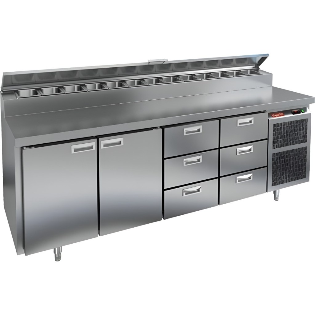 Каталог оборудования Холодильное оборудованиеСтолы охлаждаемыеСтолы холодильные для пиццыСтол холодильный для пиццы HiCold PZ2-1133GN (1/6) Стол холодильный для пиццы HiCold PZ2-1133GN (1/6) Код товара: 064-759 Поделиться: WhatsAppTelegram СравнитьДобавить в КПВ избранное 0 342 442 ₽ В корзину 0 шт Под заказСамовывоз сегодня бесплатно Взять в кредит Купить в лизинг Получить консультацию в WhatsApp Описание Характеристики Отзывы 0 Стол холодильный для пиццы HiCold PZ2-1133GN (1/6) предназначен для кухонь и предприятий общественного питания. Он используется для раскатки теста, подготовки ингредиентов для пиццы, салатов и других блюд, а также для охлаждения и кратковременного хранения скоропортящихся продуктов. Модель совмещает нержавеющую рабочую поверхность и охлаждаемый отсек с 2 дверьми и 6 ящиками, обеспечивая удобный доступ к ингредиентам и эффективное хранение. Особенности: Динамическая система охлаждения для равномерного поддержания температуры Автоматическая оттайка для удобного обслуживания Электронная панель управления для точной настройки параметров Вместительная внутренняя полка формата GN 1/1 (размер 530×325 мм) 2 двери и 6 вместительных ящика для хранения ингредиентов Автоматические доводчики дверей с фиксатором открытого положения Легкозаменяемые магнитные уплотнители для герметичности Открытая агрегатная часть для легкого доступа к компонентам Регулируемые по высоте ножки для устойчивости Нержавеющая столешница глубиной 486 мм и толщиной 50 мм — устойчива к коррозии, легко моется и гигиенична Толщина теплоизоляции: 50 мм Максимальная глубина гастроемкостей: 100 мм Вместимость салат-бара: 13 гастроемкости Стол холодильный HiCold PZ2-1133GN (1/6) — это надежный и функциональный стол для пиццы. Он объединяет рабочую поверхность и охлаждаемый отсек, упрощает хранение и подготовку ингредиентов, обеспечивает удобство работы повара и соответствует стандартам профессиональной кухни. Изображение товара, представленного на фото, может отличаться от его фактического вида. Показать все Габаритные размеры2280×700×1000 ммДиапазон рабочей температурыот +2 до +10 °CРасположение агрегатаБоковое Материал столешницыНержавеющая Тип столаС дверьми и ящиками Тип двериГлухая Объём660 лТип гастроемкостейGN 1/6 Количество дверей2 штКоличество ящиков6 штРазмер полки530×325 ммНапряжение220 ВМощность0,5 кВтТип охлажденияДинамическое Тип оттайкиАвтоматическая Габариты в упаковке2420×850×1080 ммВес нетто208 кгВес брутто240 кгБрендHicoldВсе холодильные столы для пиццы HicoldВсе нержавеющие холодильные столы для пиццы Оставить отзыв Еще никто не оставил отзыв на этот товар Ранее просмотрено Под заказ 158 391 ₽ Стол холодильный для пиццы HiCold PZE1-11GN (1/3) Под заказ 220 221 ₽ Стол холодильный для пиццы HiCold PZE1-1111GN (1/3) Под заказ 250 642 ₽ Стол холодильный для пиццы HiCold PZ1-1111GN (1/3) В наличии 64 478 ₽ Плита электрическая МХМ ПЭ47П Под заказ 352 071 ₽ Стол холодильный для пиццы HiCold PZ1-333GN (1/3H)