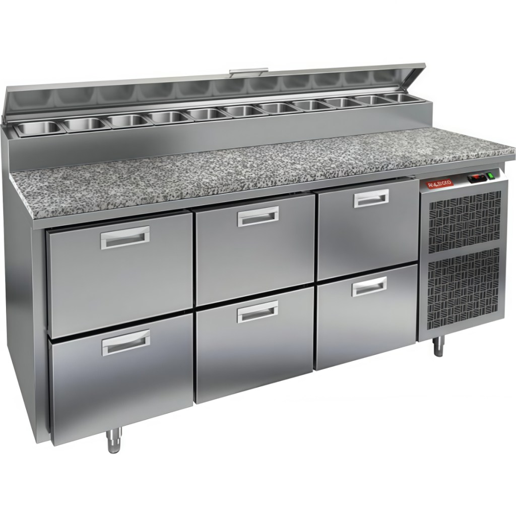 Каталог оборудования Холодильное оборудованиеСтолы охлаждаемыеСтолы холодильные для пиццыСтол холодильный для пиццы HiCold PZ2-222GN (1/6) камень Стол холодильный для пиццы HiCold PZ2-222GN (1/6) камень Код товара: 064-775 Поделиться: WhatsAppTelegram СравнитьДобавить в КПВ избранное 0 338 662 ₽ В корзину 0 шт Под заказСамовывоз сегодня бесплатно Взять в кредит Купить в лизинг Получить консультацию в Max Описание Характеристики Отзывы 0 Стол холодильный для пиццы HiCold PZ2-222GN (1/6) камень предназначен для кухонь и предприятий общественного питания. Он используется для раскатки теста, подготовки ингредиентов для пиццы, салатов и других блюд, а также для охлаждения и кратковременного хранения скоропортящихся продуктов. Модель совмещает гранитную рабочую поверхность и охлаждаемый отсек с 6 выдвижными ящиками, обеспечивая удобный доступ к ингредиентам и эффективное хранение без дверей. Особенности: Динамическая система охлаждения для равномерного поддержания температуры Автоматическая оттайка для удобного обслуживания Электронная панель управления для точной настройки параметров Вместительная внутренняя полка формата GN 1/1 (размер 530×325 мм) 6 выдвижных ящиков для хранения ингредиентов Легкозаменяемые магнитные уплотнители для герметичности Открытая агрегатная часть для легкого доступа к компонентам Регулируемые по высоте ножки для устойчивости Гранитная столешница глубиной 486 мм и толщиной 50 мм — устойчива к коррозии, легко моется и гигиенична Толщина теплоизоляции: 50 мм Максимальная глубина гастроемкостей: 100 мм Вместимость салат-бара: 11 гастроемкости Стол холодильный HiCold PZ2-222GN (1/6) камень — это надежное и удобное решение для профессиональной кухни. Он обеспечивает легкий доступ к ингредиентам, упрощает хранение и подготовку продуктов и полностью соответствует стандартам предприятий общественного питания.Изображение товара, представленного на фото, может отличаться от его фактического вида. Показать все Габаритные размеры1835×700×1000 ммДиапазон рабочей температурыот +2 до +10 °CРасположение агрегатаБоковое Материал столешницыГранитная Тип столаС ящиками Объём505 лТип гастроемкостейGN 1/6 Количество ящиков6 штНапряжение220 ВМощность0,5 кВтТип охлажденияДинамическое Тип оттайкиАвтоматическая Габариты в упаковке2000×850×1140 ммВес нетто172 кгВес брутто248 кгБрендHicoldВсе холодильные столы для пиццы Hicold Оставить отзыв Еще никто не оставил отзыв на этот товар Ранее просмотрено Под заказ 142 462 ₽ Стол холодильный для салатов HiCold SL2-11SN (1/6)