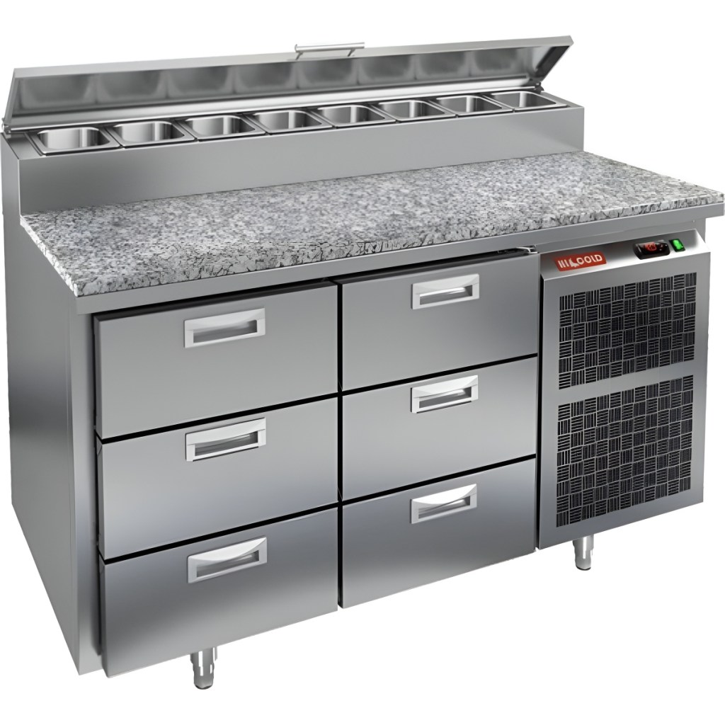 Каталог оборудования Холодильное оборудованиеСтолы охлаждаемыеСтолы холодильные для пиццыСтол холодильный для пиццы HiCold PZ2-33GN (1/6) камень Стол холодильный для пиццы HiCold PZ2-33GN (1/6) камень Код товара: 064-767 Поделиться: WhatsAppTelegram СравнитьДобавить в КПВ избранное 0 299 692 ₽ В корзину 0 шт Под заказСамовывоз сегодня бесплатно Взять в кредит Купить в лизинг Получить консультацию в WhatsApp Описание Характеристики Отзывы 0 Стол холодильный для пиццы HiCold PZ2-33GN (1/6) камень предназначен для кухонь и предприятий общественного питания. Он используется для раскатки теста, подготовки ингредиентов для пиццы, салатов и других блюд, а также для охлаждения и кратковременного хранения скоропортящихся продуктов. Модель совмещает гранитную рабочую поверхность и охлаждаемый отсек с 6 выдвижными ящиками, обеспечивая удобный доступ к ингредиентам и эффективное хранение без дверей. Особенности: Динамическая система охлаждения для равномерного поддержания температуры Автоматическая оттайка для удобного обслуживания Электронная панель управления для точной настройки параметров Вместительная внутренняя полка формата GN 1/1 (размер 530×325 мм) 6 выдвижных ящиков для хранения ингредиентов Легкозаменяемые магнитные уплотнители для герметичности Открытая агрегатная часть для легкого доступа к компонентам Регулируемые по высоте ножки для устойчивости Гранитная столешница глубиной 486 мм и толщиной 50 мм — устойчива к повреждениям, легко моется и гигиенична Толщина теплоизоляции: 50 мм Максимальная глубина гастроемкостей: 100 мм Вместимость салат-бара: 8 гастроемкости Стол холодильный HiCold PZ2-33GN (1/6) камень — это надежное и удобное решение для профессиональной кухни. Он обеспечивает легкий доступ к ингредиентам, упрощает хранение и подготовку продуктов и полностью соответствует стандартам предприятий общественного питания.Изображение товара, представленного на фото, может отличаться от его фактического вида. Показать все Габаритные размеры1390×700×1000 ммДиапазон рабочей температурыот +2 до +10 °CРасположение агрегатаБоковое Материал столешницыГранитная Тип столаС ящиками Объём350 лТип гастроемкостейGN 1/6 Количество ящиков6 штНапряжение220 ВМощность0,2 кВтТип охлажденияДинамическое Тип оттайкиАвтоматическая Габариты в упаковке1550×850×1140 ммВес нетто165 кгВес брутто185 кгБрендHicoldВсе холодильные столы для пиццы Hicold Оставить отзыв Еще никто не оставил отзыв на этот товар Ранее просмотрено Под заказ 354 847 ₽ Камера холодильная Polair КХН-17,63 (2000×5000×2240) 100 мм
