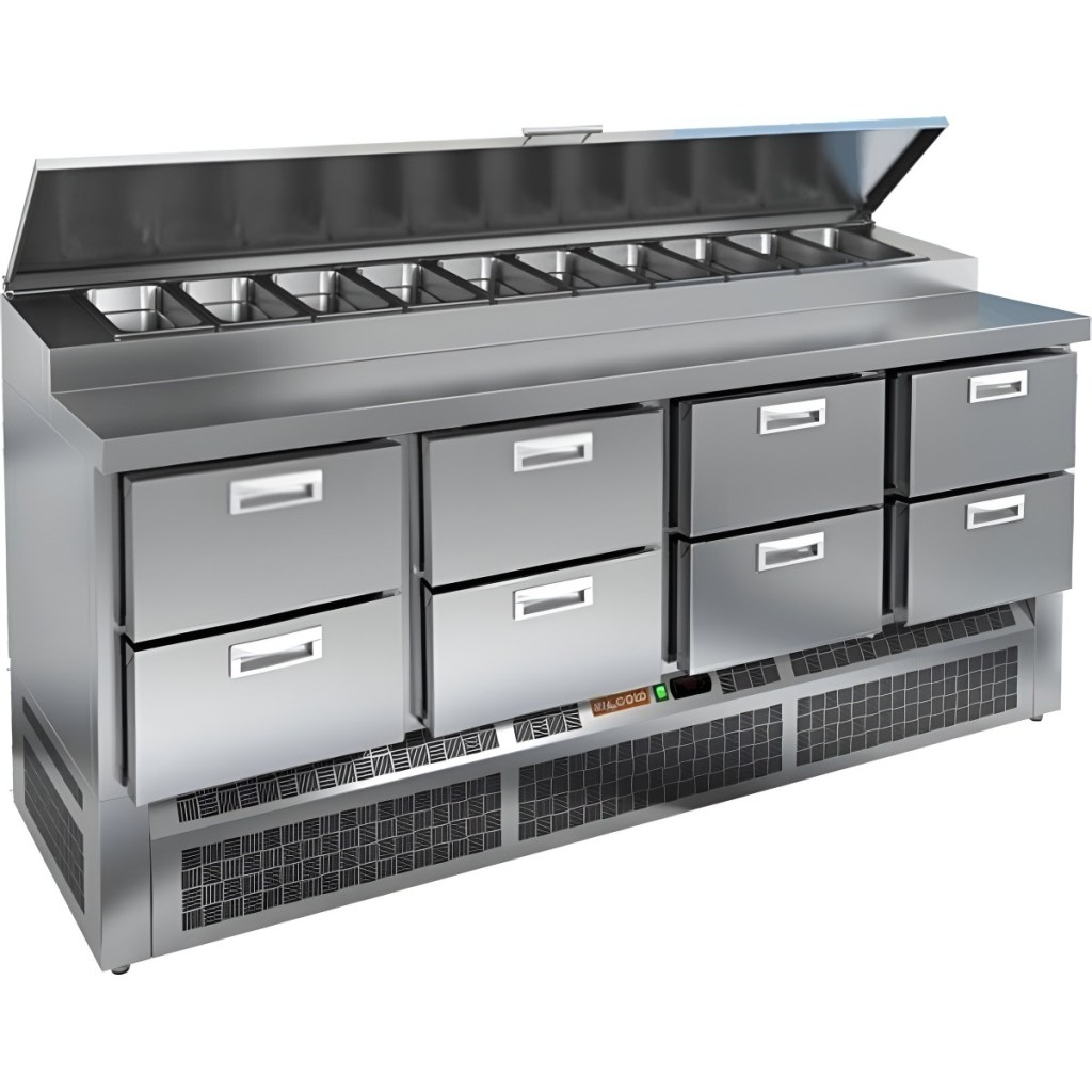 Каталог оборудования Холодильное оборудованиеСтолы охлаждаемыеСтолы холодильные для пиццыСтол холодильный для пиццы HiCold PZE1-2222GN (1/3) Стол холодильный для пиццы HiCold PZE1-2222GN (1/3) Код товара: 064-726 Поделиться: WhatsAppTelegram СравнитьДобавить в КПВ избранное 0 342 622 ₽ В корзину 0 шт Под заказСамовывоз сегодня бесплатно Взять в кредит Купить в лизинг Получить консультацию в WhatsApp Описание Характеристики Отзывы 0 Стол холодильный для пиццы HiCold PZE1-2222GN (1/3) — профессиональное оборудование для предприятий общественного питания и торговли. Он предназначен для раскатки теста и подготовки ингредиентов, используемых при приготовлении пиццы, салатов и других блюд, а также для охлаждения и кратковременного хранения скоропортящихся продуктов и напитков. Совмещение рабочей поверхности и охлаждаемого блока значительно упрощает работу повара — все необходимые компоненты находятся под рукой. Корпус и столешница выполнены из нержавеющей стали, обеспечивая долговечность, устойчивость к повреждениям и лёгкость ухода. Основные особенности: Динамическая система охлаждения — равномерное распределение холода по всему объёму Автоматическая оттайка — стабильная работа без образования наледи Электронная панель управления — точная настройка температуры 8 выдвижных ящика — удобная организация внутреннего пространства Автоматические доводчики ящиков — комфорт при работе Легкозаменяемые магнитные уплотнители — поддержание герметичности Открытая агрегатная часть — лёгкий доступ к техническим элементам Регулируемые по высоте ножки — установка на неровных поверхностях Максимальная глубина гастроёмкостей: 100 мм Глубина рабочей поверхности: 324 мм Толщина столешницы: 50 мм Толщина теплоизоляции: 50 мм Вместимость салат-бара: до 5 гастроёмкостей HiCold PZE1-2222GN (1/3) с четырьмя выдвижными ящиками — надёжный и функциональный холодильный стол для пиццы и салатов. Продуманная организация хранения и удобство эксплуатации обеспечивают быстрый доступ к ингредиентам и повышают производительность на профессиональной кухне.Изображение товара, представленного на фото, может отличаться от его фактического вида. Показать все Габаритные размеры1970×700×990 ммДиапазон рабочей температурыот +2 до +10 °CРасположение агрегатаНижнее Материал столешницыНержавеющая Тип столаС ящиками Объём505 лТип гастроемкостейGN 1/3 Количество ящиков8 штНапряжение220 ВМощность0,46 кВтТип охлажденияДинамическое Тип оттайкиАвтоматическая Габариты в упаковке2070×800×1260 ммВес нетто168 кгВес брутто227 кгБрендHicoldВсе холодильные столы для пиццы HicoldВсе нержавеющие холодильные столы для пиццы Оставить отзыв Еще никто не оставил отзыв на этот товар Ранее просмотрено Под заказ 311 842 ₽ Стол холодильный для пиццы HiCold PZ1-1122/GN (1/3H) Под заказ 244 971 ₽ Стол холодильный для пиццы HiCold PZ1-112GN (1/3H) Под заказ 206 541 ₽ Стол холодильный для пиццы HiCold PZ1-11GN (1/3) М Под заказ 273 142 ₽ Стол холодильный для пиццы HiCold PZ1-1111GN (1/3) M Под заказ 260 272 ₽ Стол холодильный для пиццы HiCold PZ1-113GN (1/3H) Под заказ 250 822 ₽ Стол холодильный для пиццы HiCold PZE1-1112/GN (1/3) Под заказ 306 171 ₽ Стол холодильный для пиццы HiCold PZ1-222GN (1/3H)