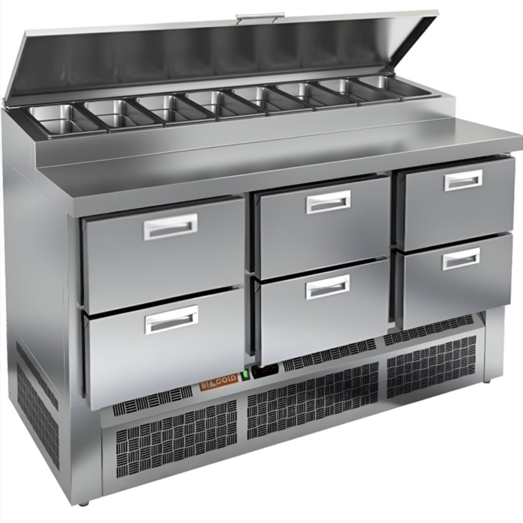 Каталог оборудования Холодильное оборудованиеСтолы охлаждаемыеСтолы холодильные для пиццыСтол холодильный для пиццы HiCold PZE1-222GN (1/3) Стол холодильный для пиццы HiCold PZE1-222GN (1/3) Код товара: 064-727 Поделиться: WhatsAppTelegram СравнитьДобавить в КПВ избранное 0 278 361 ₽ В корзину 0 шт Под заказСамовывоз сегодня бесплатно Взять в кредит Купить в лизинг Получить консультацию в WhatsApp Описание Характеристики Отзывы 0 Стол холодильный для пиццы HiCold PZE1-222GN (1/3) — профессиональное оборудование для предприятий общественного питания и торговли. Он предназначен для раскатки теста и подготовки ингредиентов, используемых при приготовлении пиццы, салатов и других блюд, а также для охлаждения и кратковременного хранения скоропортящихся продуктов и напитков. Совмещение рабочей поверхности и охлаждаемого блока значительно упрощает работу повара — все необходимые компоненты находятся под рукой. Корпус и столешница выполнены из нержавеющей стали, обеспечивая долговечность, устойчивость к повреждениям и лёгкость ухода. Основные особенности: Динамическая система охлаждения — равномерное распределение холода по всему объёму Автоматическая оттайка — стабильная работа без образования наледи Электронная панель управления — точная настройка температуры 6 выдвижных ящика — удобная организация внутреннего пространства Автоматические доводчики ящиков — комфорт при работе Легкозаменяемые магнитные уплотнители — поддержание герметичности Открытая агрегатная часть — лёгкий доступ к техническим элементам Регулируемые по высоте ножки — установка на неровных поверхностях Максимальная глубина гастроёмкостей: 100 мм Глубина рабочей поверхности: 324 мм Толщина столешницы: 50 мм Толщина теплоизоляции: 50 мм Вместимость салат-бара: до 8 гастроёмкостей HiCold PZE1-222GN (1/3) с четырьмя выдвижными ящиками — надёжный и функциональный холодильный стол для пиццы и салатов. Продуманная организация хранения и удобство эксплуатации обеспечивают быстрый доступ к ингредиентам и повышают производительность на профессиональной кухне.Изображение товара, представленного на фото, может отличаться от его фактического вида. Показать все Габаритные размеры1485×700×990 ммДиапазон рабочей температурыот +2 до +10 °CРасположение агрегатаНижнее Материал столешницыНержавеющая Тип столаС ящиками Объём375 лТип гастроемкостейGN 1/3 Количество ящиков6 штНапряжение220 ВМощность0,22 кВтТип охлажденияДинамическое Тип оттайкиАвтоматическая Габариты в упаковке1680×840×1170 ммВес нетто115 кгВес брутто153 кгБрендHicoldВсе холодильные столы для пиццы HicoldВсе нержавеющие холодильные столы для пиццы Оставить отзыв Еще никто не оставил отзыв на этот товар Ранее просмотрено Под заказ 244 971 ₽ Стол холодильный для пиццы HiCold PZ2-211/GN (1/6H) Под заказ 311 842 ₽ Стол холодильный для пиццы HiCold PZ1-1122/GN (1/3H) Под заказ 244 971 ₽ Стол холодильный для пиццы HiCold PZ1-112GN (1/3H) Под заказ 206 541 ₽ Стол холодильный для пиццы HiCold PZ1-11GN (1/3) М Под заказ 273 142 ₽ Стол холодильный для пиццы HiCold PZ1-1111GN (1/3) M Под заказ 260 272 ₽ Стол холодильный для пиццы HiCold PZ1-113GN (1/3H) Под заказ 250 822 ₽ Стол холодильный для пиццы HiCold PZE1-1112/GN (1/3)