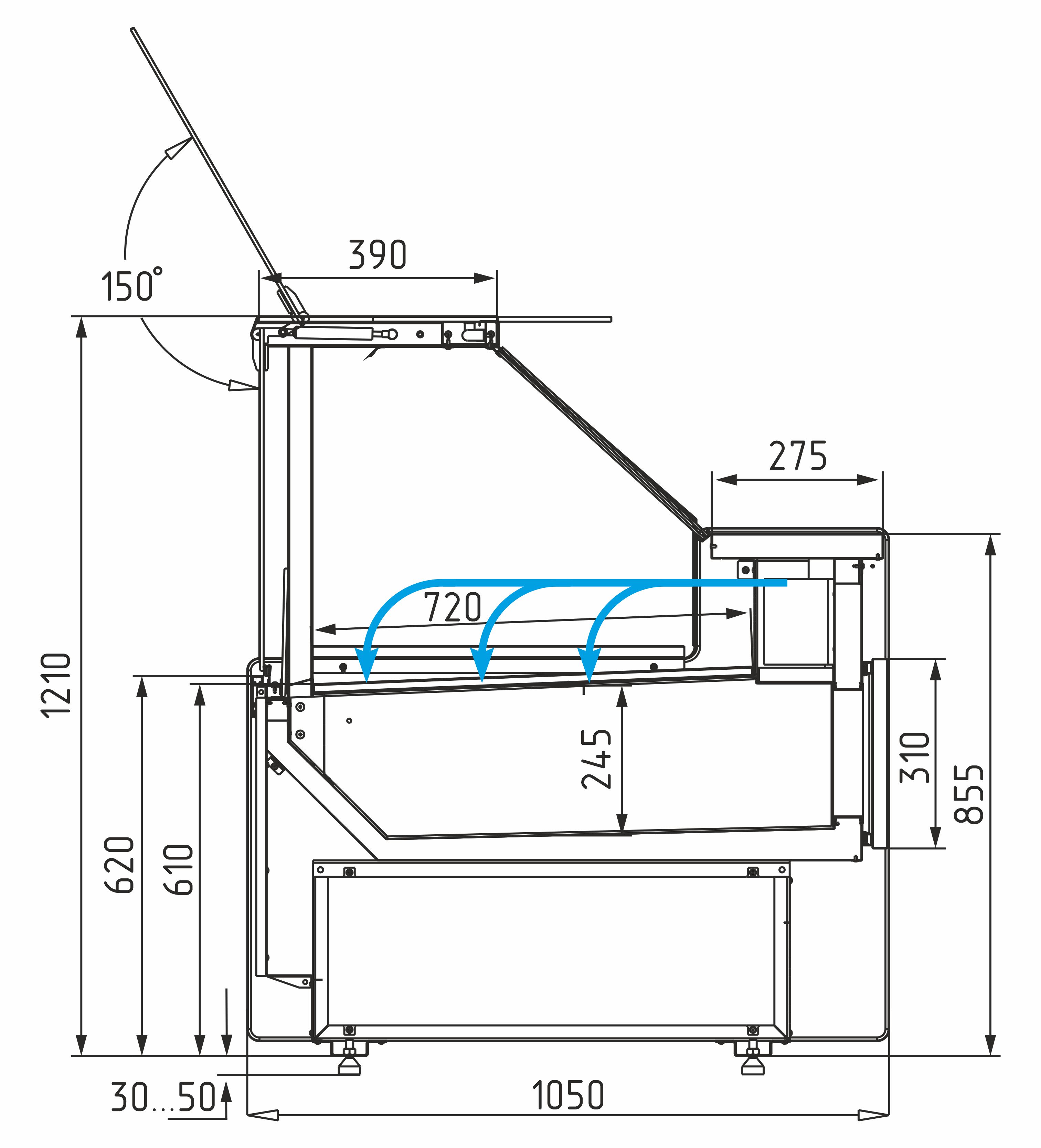 Отбойник холода — снижает потери температуры при открытии витрины.